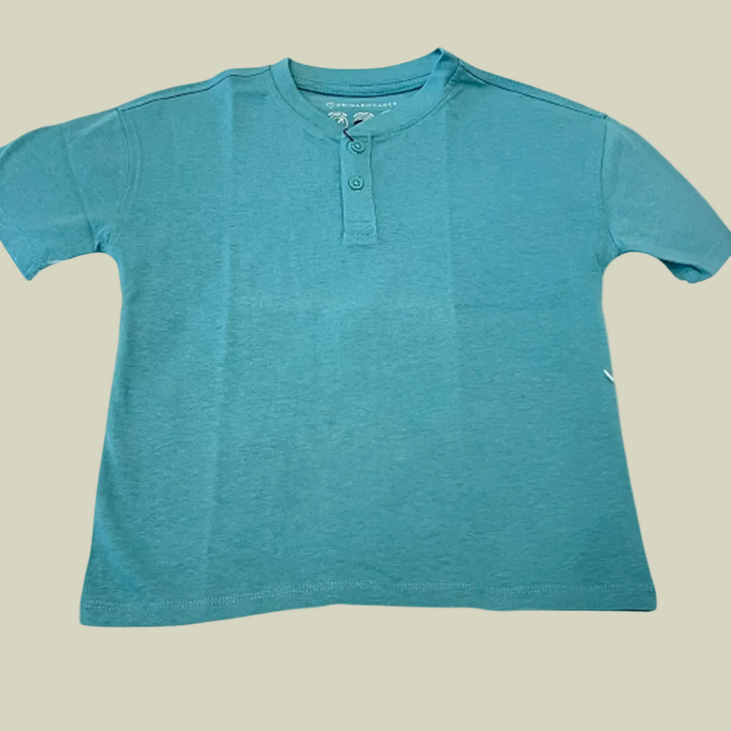 | Descricao | Tshirt lisa com gola mais alta com decote com botoes. Manga curta. |